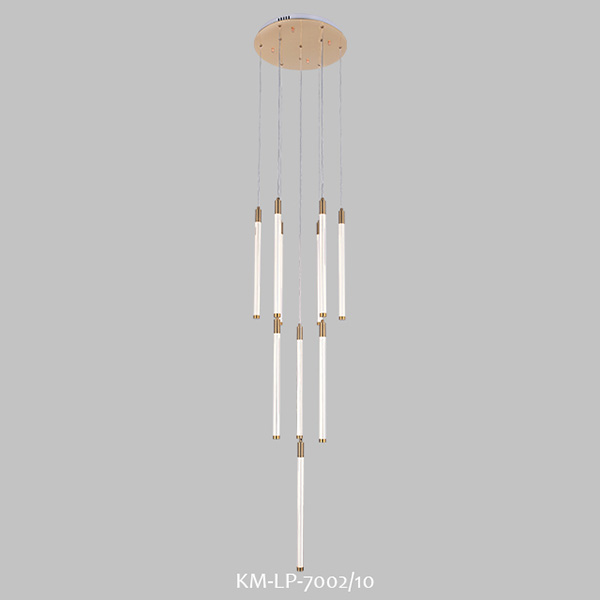 The distinctive opaline glow of KM-LP-7002, LED acrylic tubing, and modular pendant system hides its technical precision through an aesthetic of simplicity and pureness in design.KM-LP-7002 in a number of configurations, Modern linear pendant lights with remote monochromatic dimming light keep true to their most minimal yet sleek form with metallic finishes, with all eyes on the bars of illumination. This collection fits almost any design and styling needs. Available in gold finishes. Custom finishes are available upon request.