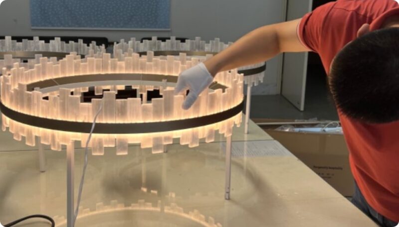 After approving the drawings and all finishes, the Ki-Max Lighting team arranges the production of samples. Upon assembling and inspecting the structure and effect of the initial prototypes, our QC team checks and confirms the quality before proceeding with the finish treatment, ensuring high-quality product samples. The lead time for samples typically ranges from 30 to 40 days, and 50 to 60 days if tooling or molds are involved.