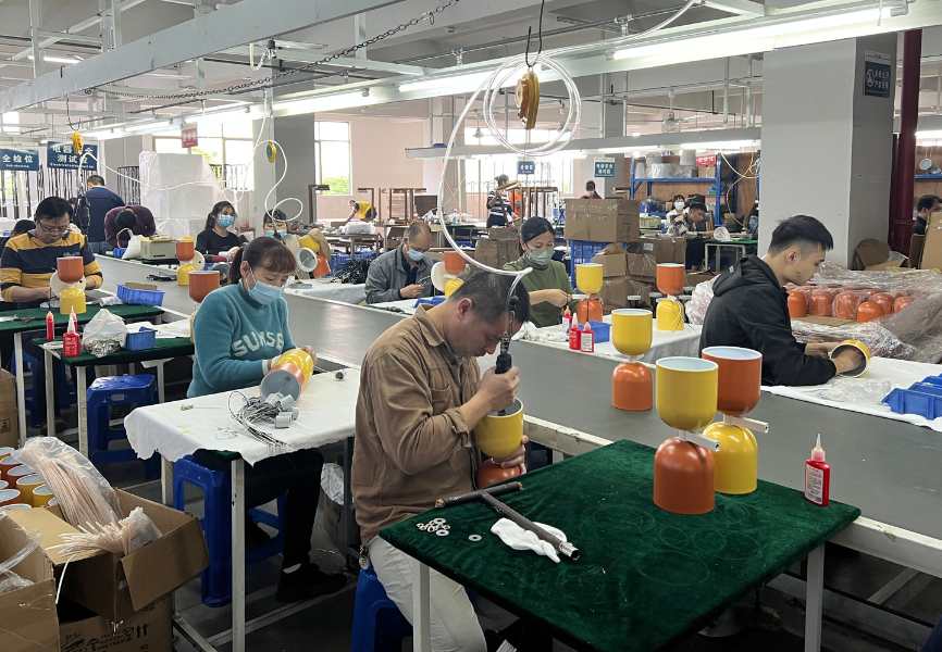 After approving samples and prototypes, the Ki-Max Lighting team schedules mass production. Our hardware processing workshop utilizes precision machining equipment for all metal materials. Hardware undergoes multiple processing steps such as welding, grinding, and polishing before moving on to finishing processes. Assembly starts once all components are collected, with an estimated production lead time of 30-45 days.