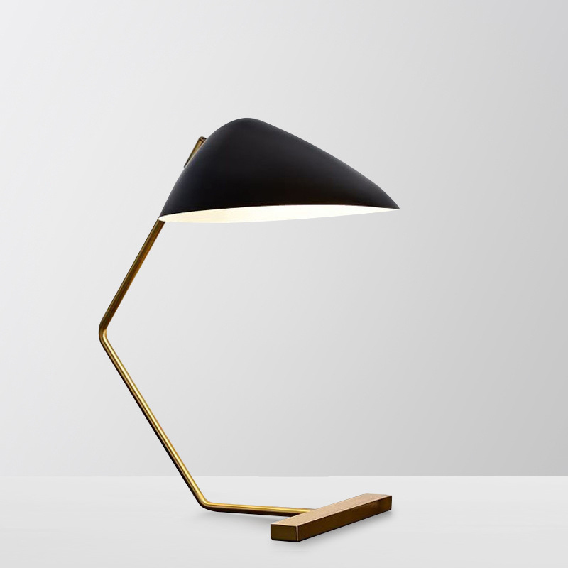 Crafted from a black shell-shaped metal shade and a brass base, Work for something that catches the eye when you walk in, opt for a minimal study lamp for your workspace or reading area, or even something like a valuable table lamp in the Lighting design concept. The head of the classic shell shade table lamp bends, which you can direct the lightness where you need it most, making it a perfect choice for reading nooks or desks. Space-conscious, the black shell shade table lamps offer ideal mood lighting as they balance the look of any aesthetic, and adds a touch of modern and classic mid-century style to your house.